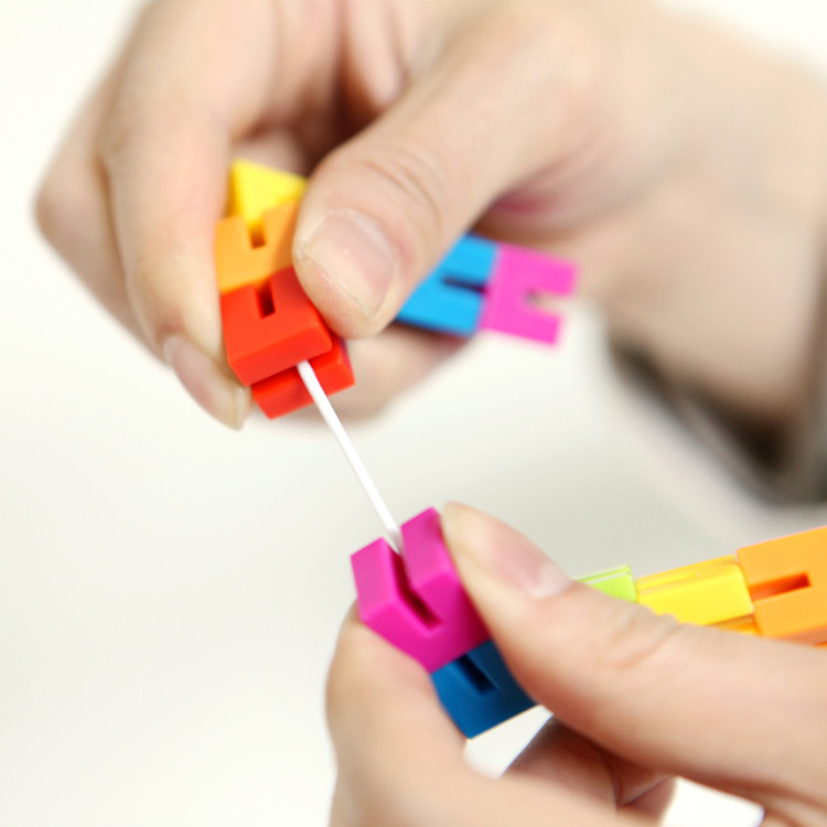 원목큐브 조각을 이리저리 돌리면서 패턴카드와 일치하게 큐브를 배열해보아요.