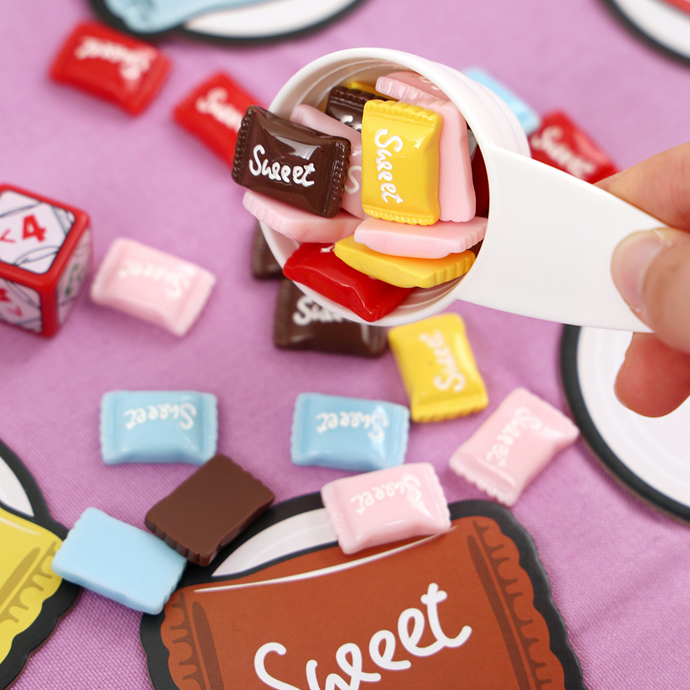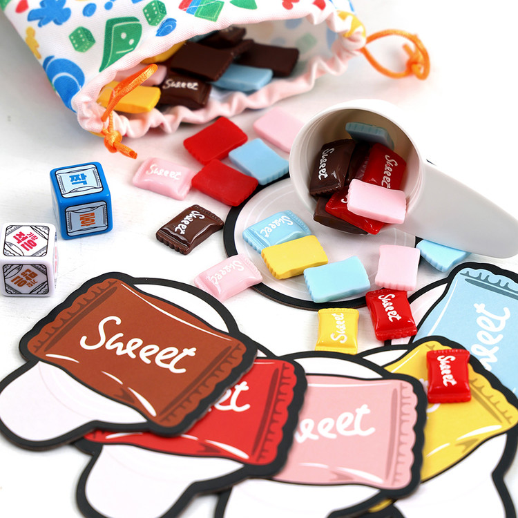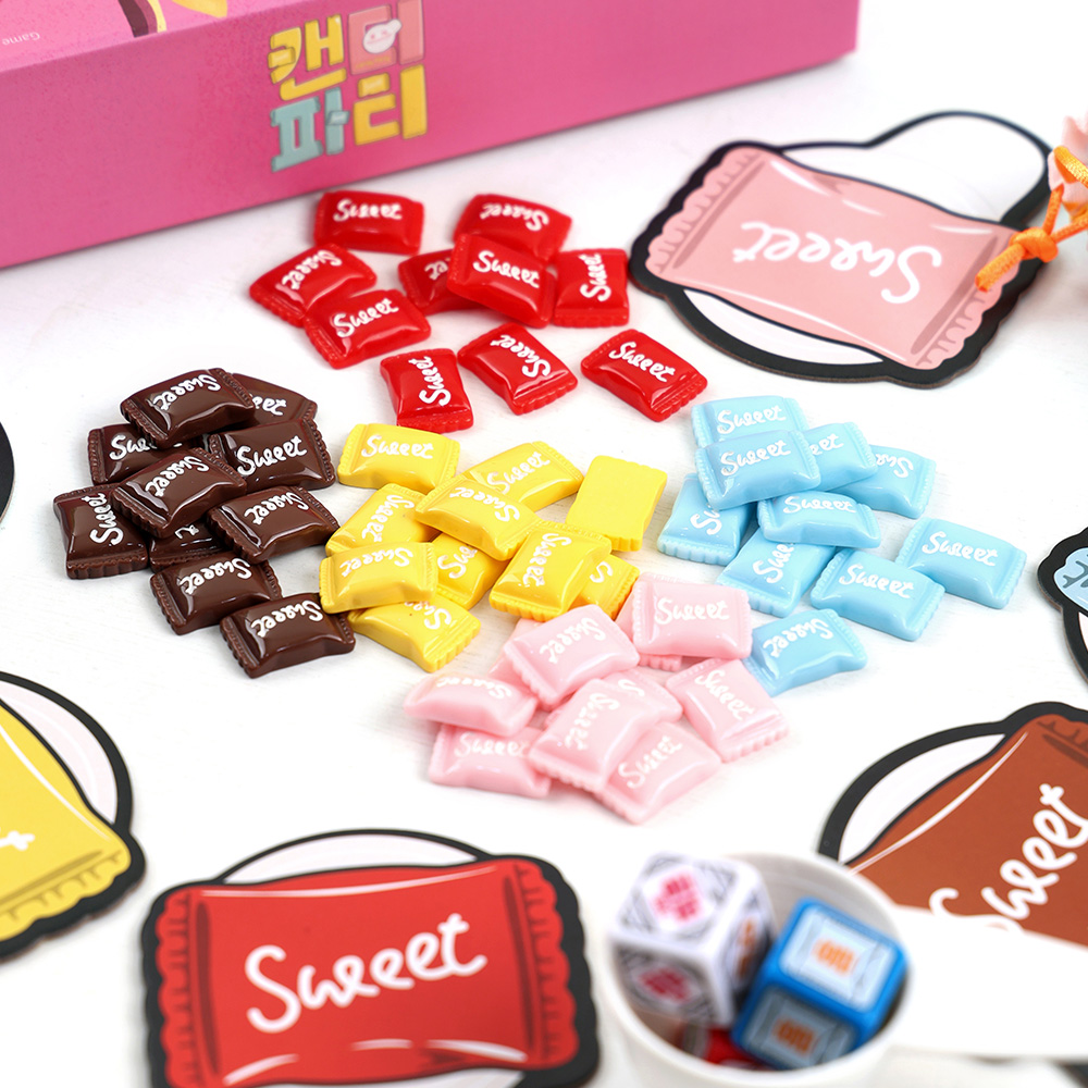 캔디파티는 사탕을 눈으로 빠르게 세면서 수 개념을 익히는 보드게임이에요.