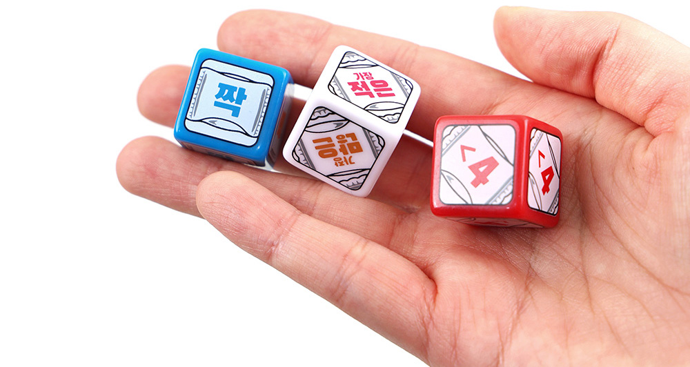 게임주사위 3개가 포함되어 있는데, 일반 숫자 주사위가 아니에요.