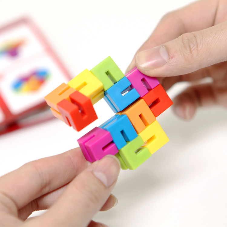 원목큐브 조각을 이리저리 돌리면서 패턴카드와 일치하게 큐브를 배열해보아요.