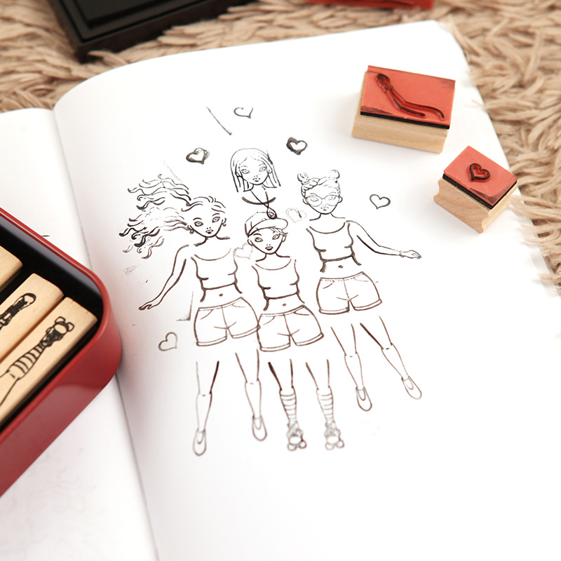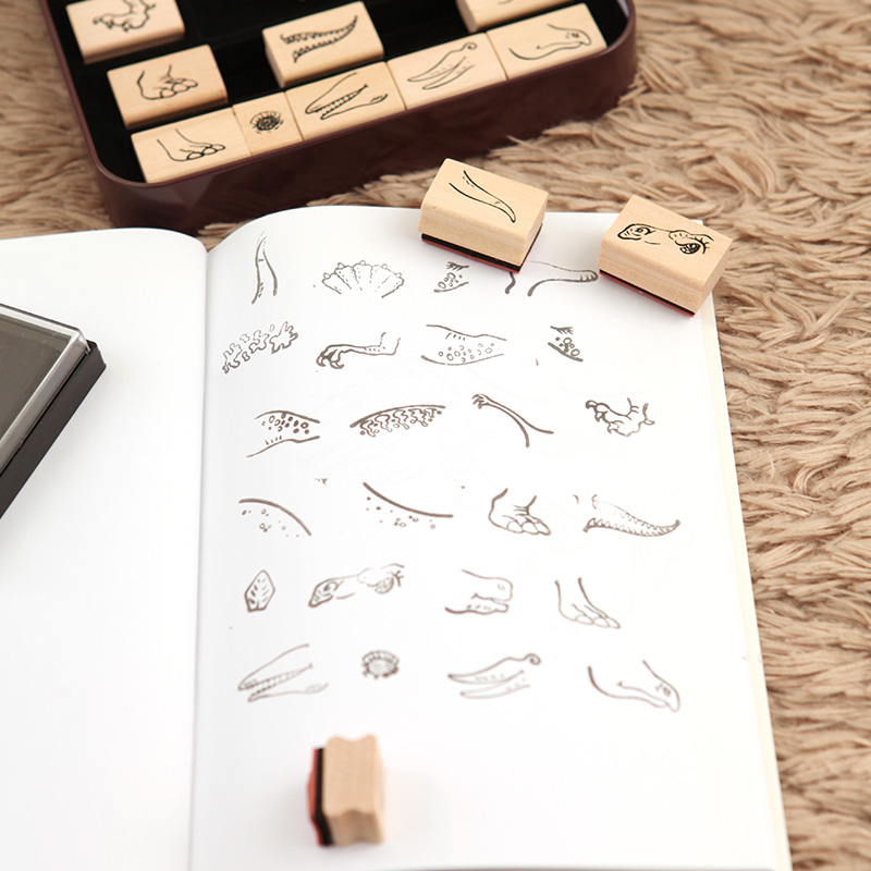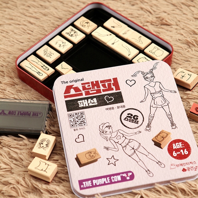 스탬프 26개와 잉크패드 1개로 구성되어 있고, 상의, 하의, 팔, 다리, 얼굴 등