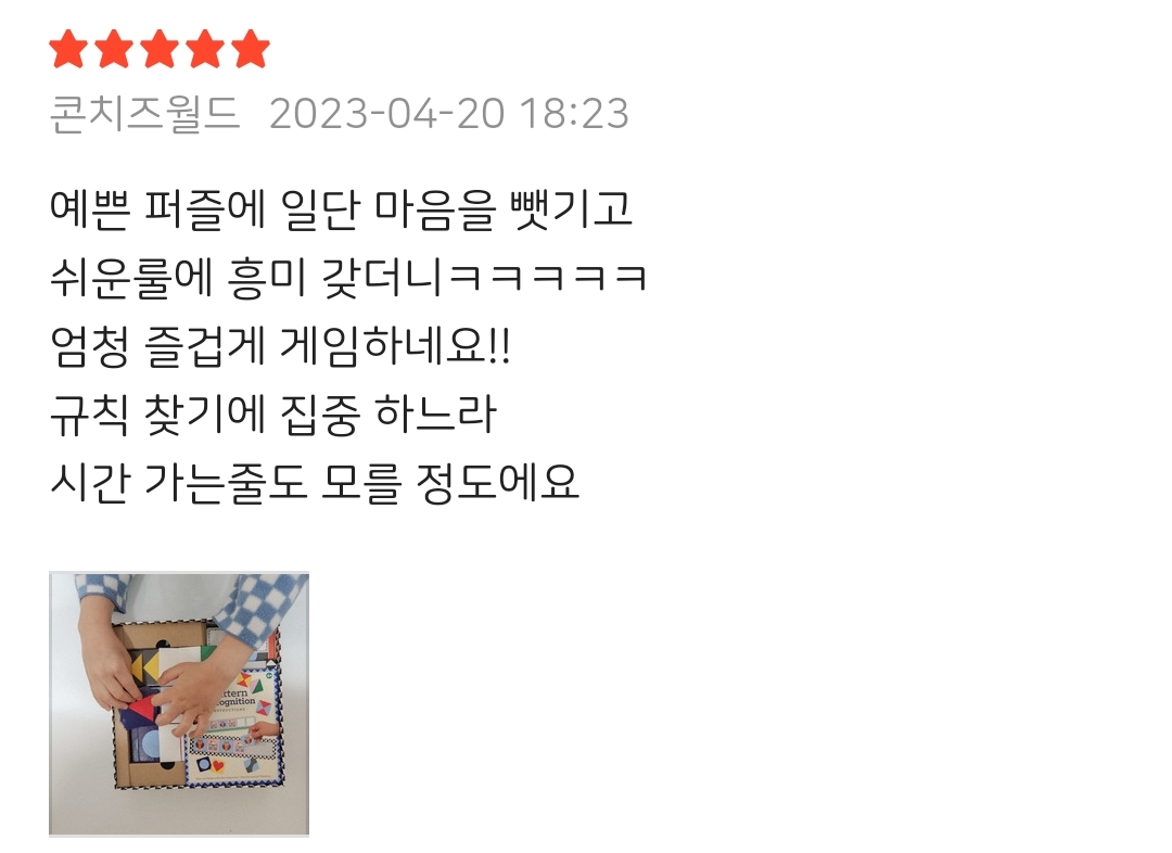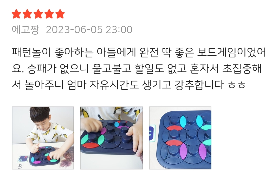 이제 어린 아이들도 패턴을 쉽게 이해하면서 두뇌운동을 촉진시킬 수 있어요.