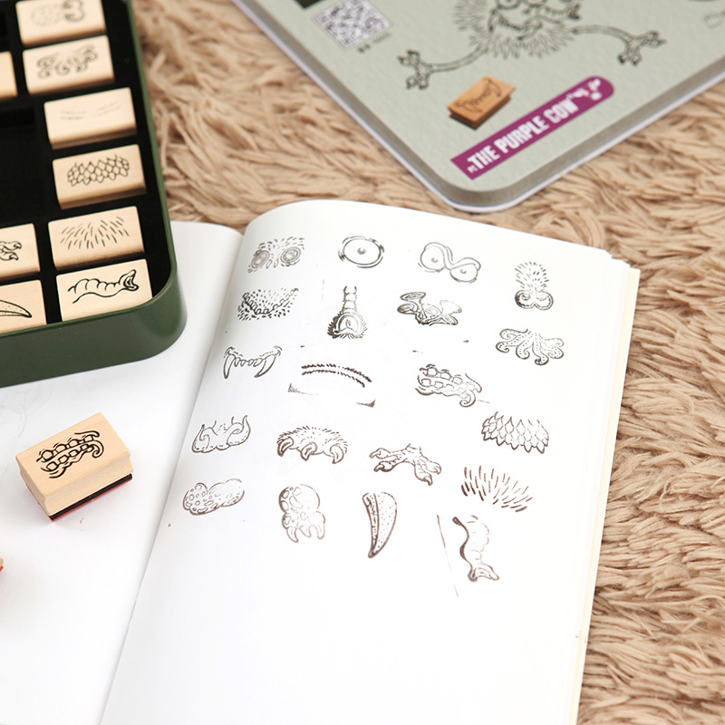 몬스터메이커는 스탬프 20개와 잉크패드 1개로 구성되어 있어요.